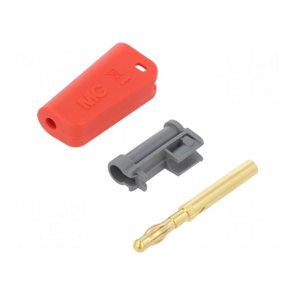 Złącze bananowe o średnicy 4 mm przeznaczone jest do połączeń laboratoryjnych. Komponent typu wtyk posiada nieizolowaną konstrukcję wyposażoną w gniazdo osiowe 4 mm, co umożliwia kaskadowe łączenie przewodów. Styki elementu zostały poddane procesowi złocenia w celu zapewnienia parametrów połączenia.