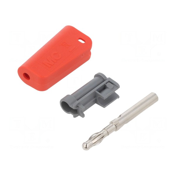 Wersja nieizolowana wyposażona jest w gniazdo osiowe 4mm, co umożliwia łączenie szeregowe przewodów. Styk elementu jest niklowany, a montaż na przewód o przekroju 2,5mm² odbywa się przy użyciu połączenia śrubowego. Złącze występuje w kolorze czerwonym.