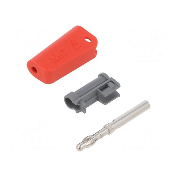 Złącze bananowe 4mm wtyk, prąd znamionowy 19A, czerwone