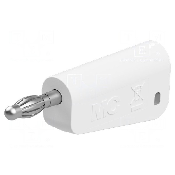 Wersja złącza jest nieizolowana i została wyposażona w dodatkowe gniazdo osiowe o średnicy 4 mm. Powierzchnia styku wtyku jest niklowana, a korpus posiada biały kolor.