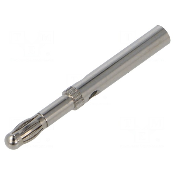 Konstrukcja wtyku posiada niklowaną powłokę styków, co wpływa na parametry połączenia elektrycznego. Komponent jest przeznaczony do montażu w standardowych gniazdach o średnicy 4 mm.