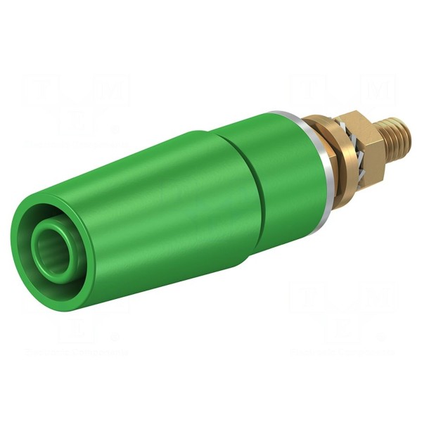 Złącze bananowe 4mm, gniazdo 1kV, 32A, kolor zielony
