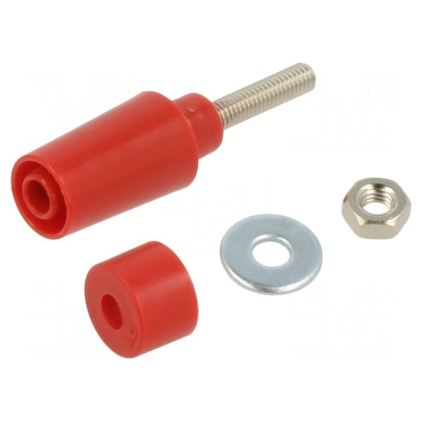 Złącze bananowe 4mm, 1kV, 32A, kolor czerwony