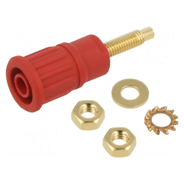 Gniazdo bananowe 4mm 1kV/32A, kolor czerwony