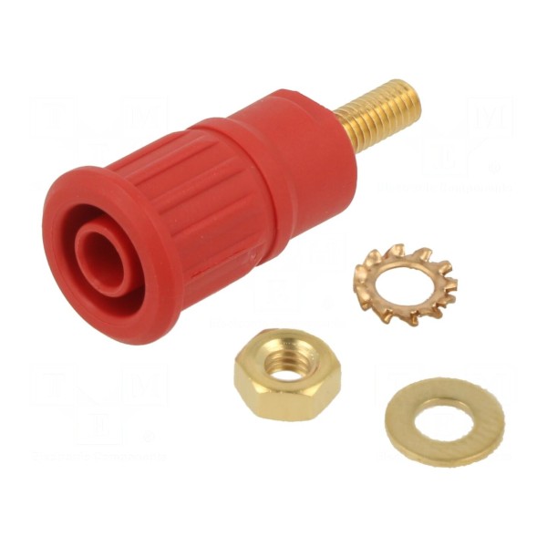 Złącze bananowe 4mm 1kV/32A, montaż panelowy, kolor czerwony