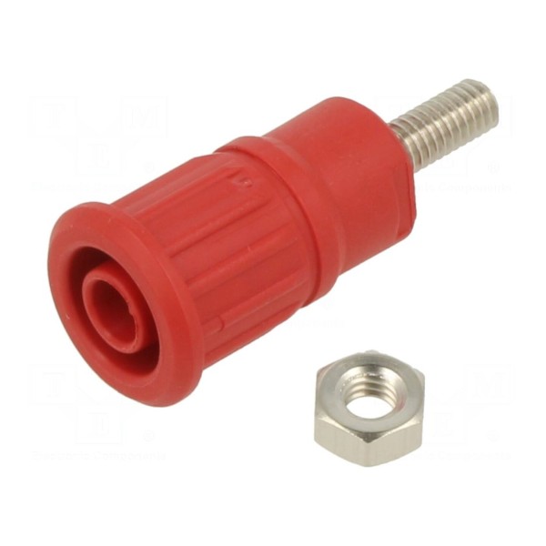 Złącze laboratoryjne typu gniazdo bananowe 4mm przeznaczone jest do pracy pod napięciem znamionowym do 1kV oraz prądem znamionowym do 32A. Element posiada izolowaną konstrukcję z niklowanym pokryciem styku, co zapewnia właściwe parametry przewodzenia. Produkt został zaprojektowany do montażu przykręcanego na panelu za pomocą gwintu M4.