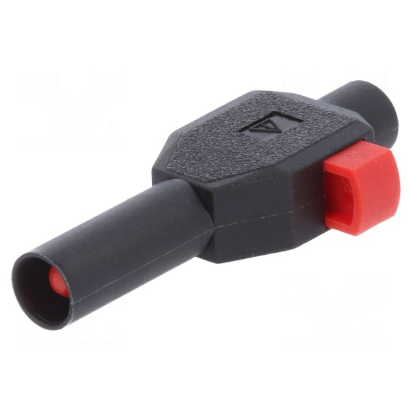 Złącze bananowe o średnicy 4 mm przeznaczone jest do zastosowań laboratoryjnych. Komponent typu wtyk posiada izolowaną konstrukcję, co poprawia bezpieczeństwo pracy przy napięciach znamionowych do 0,6 kV.