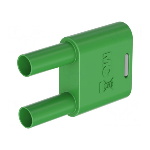 Konstrukcja komponentu obejmuje gniazda oraz wtyki typu banan 4mm w układzie podwójnym. Złącze jest zgodne z normami bezpieczeństwa CAT II 1000V oraz EN 61010, co pozwala na wykorzystanie go w pomiarach elektrycznych.