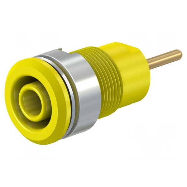 Gniazdo bananowe o średnicy 4mm przeznaczone jest do montażu panelowego. Element wykonany został z mosiądzu z powierzchnią styków pokrytą złotem, co zapewnia odpowiednią przewodność połączenia.