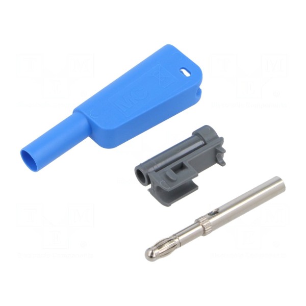 Kontakt złącza posiada niklowane pokrycie, co zapewnia właściwe parametry połączeniowe. Produkt jest zgodny z normami bezpieczeństwa CAT II 1000V oraz CAT III 600V zgodnie z EN 61010. Obudowa złącza wykonana jest w kolorze niebieskim.