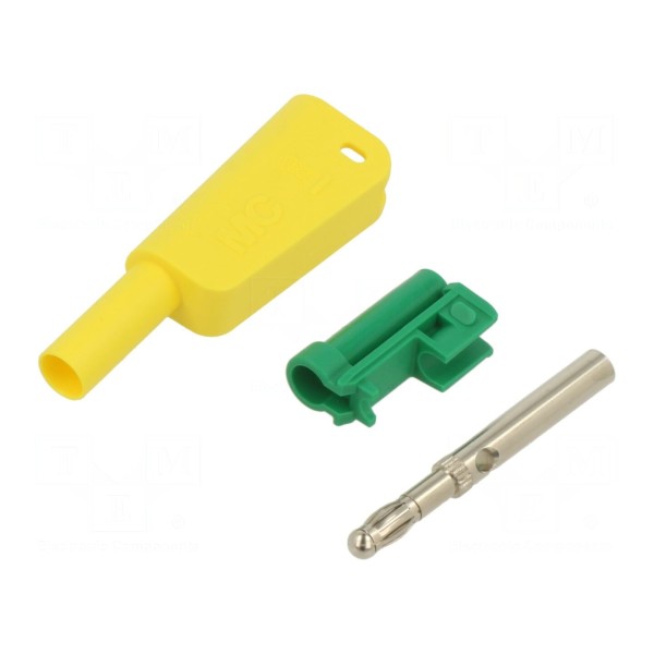 Złącze bananowe 4mm, 19A, 1kV, kolor żółto-zielony