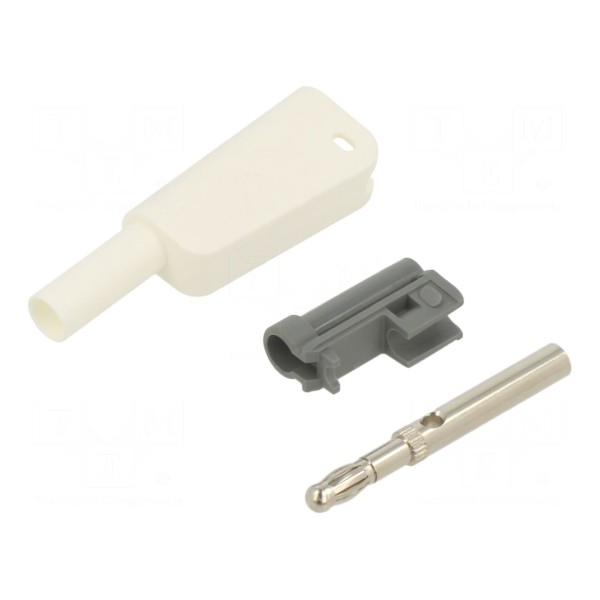 Złącze bananowe 4mm, 19A, 1kV, białe, montaż lutowany
