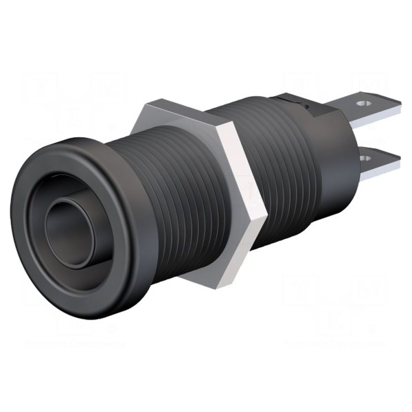 Gniazdo bananowe 4mm, 20A, 1kV, czarne, montaż panelowy