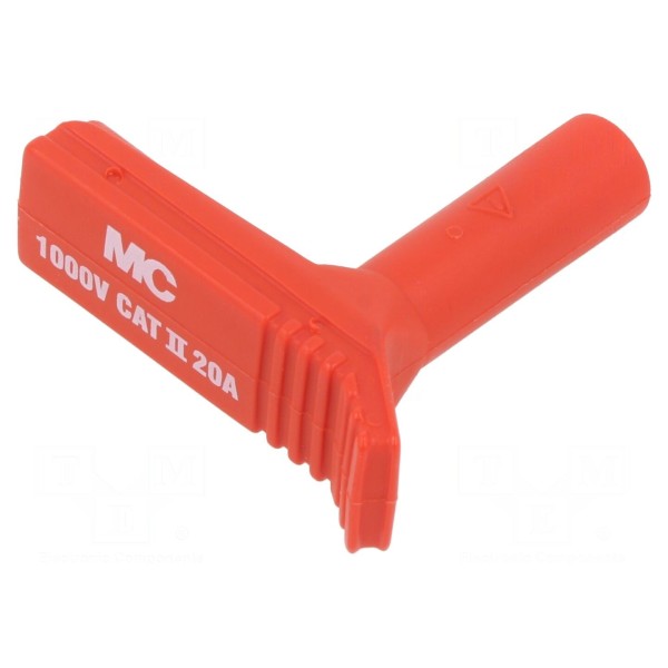 Złącze bananowe 4mm, kątowe, prąd znamionowy 20A, czerwone