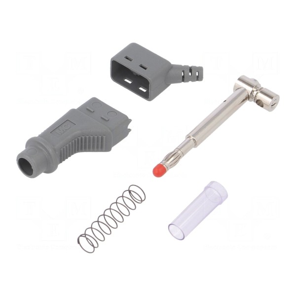 Złącze bananowe 4mm wtyk, 32A, 600V, szare