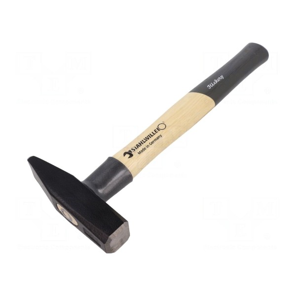 Trzonek młotka został wytworzony z drewna hikorowego, które cechuje się wytrzymałością na obciążenia dynamiczne. Narzędzie jest przeznaczone do wykonywania prac ślusarskich.