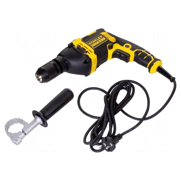 Wiertarka udarowa STANLEY FMEH750K-QS to elektryczne elektronarzędzie zasilane napięciem 230V AC, dysponujące mocą maksymalną 750W. Urządzenie oferuje dwa tryby pracy: wiercenie oraz wiercenie z udarem, co pozwala na obróbkę różnorodnych materiałów. Prędkość obrotowa regulowana jest w zakresie od 0 do 3200 obr./min, a przekładnia pracuje w trybie jednobiegowym.