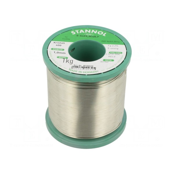 Bezołowiowy drut lutowniczy o składzie stopu Sn99,3Cu0,7 jest przeznaczony do procesów lutowania miękkiego. Produkt charakteryzuje się temperaturą topnienia wynoszącą 227°C i występuje w formie drutu nawiniętego na szpulę o masie 1 kg.