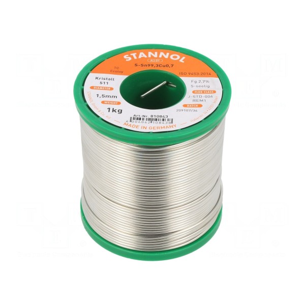 Cyna Sn99,3Cu0,7 ⌀1,5mm, 1kg