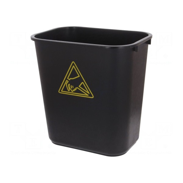Kosz na śmieci ESD przeznaczony jest do składowania odpadów w strefach chronionych przed wyładowaniami elektrostatycznymi. Wykonany został z polipropylenu o właściwościach antystatycznych w kolorze czarnym.
