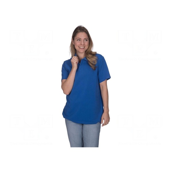 Koszulka polo w wersji ESD unisex wykonana jest z mieszanki bawełny, poliestru oraz włókien przewodzących. Materiał o gramaturze 180g/m² charakteryzuje się właściwościami rozpraszającymi ładunki elektrostatyczne.