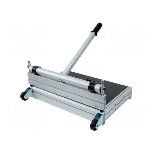 Konstrukcja urządzenia oparta na mechanizmie dźwigniowym umożliwia obsługę ręczną podczas obróbki wykładzin antystatycznych. Narzędzie dedykowane jest do instalacji i dopasowywania mat podłogowych w strefach chronionych przed wyładowaniami elektrostatycznymi.