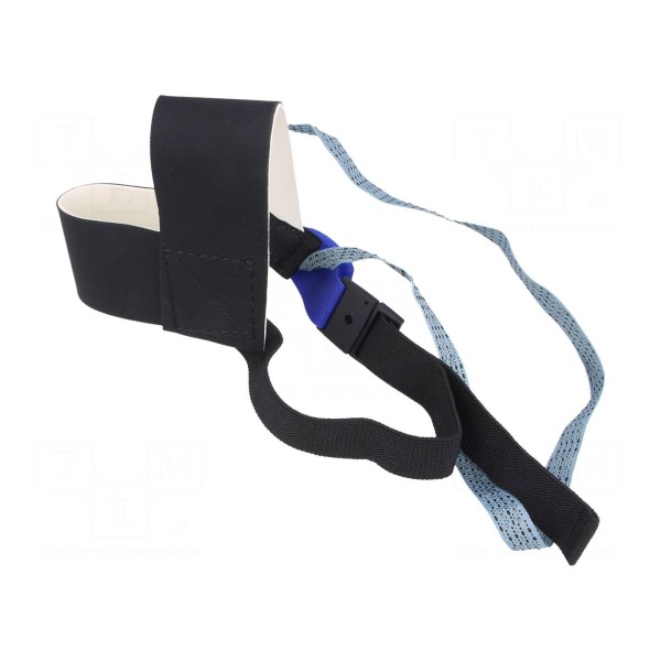 Antystatyczna opaska na buty typu ESD przeznaczona jest do odprowadzania ładunków elektrostatycznych. Element mocowany jest pod piętę, a konstrukcja posiada wbudowany rezystor o wartości 1MΩ.