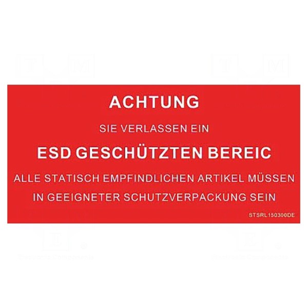 Wersja tablicy jest zgodna ze standardami ESD. Treść informacyjna przygotowana została w języku niemieckim (DE).