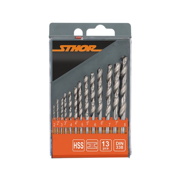 Wiertła do metalu HSS Sthor 2–8 mm, 13 sztuk