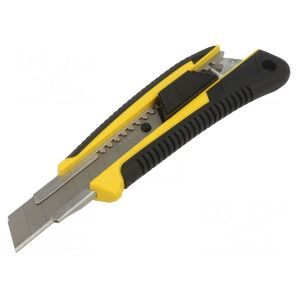 Narzędzie przeznaczone do prac uniwersalnych, wyposażone w ostrze łamane o szerokości 18 mm. Konstrukcja pozwala na wysuwanie oraz bezpieczne blokowanie ostrza w wybranej pozycji.