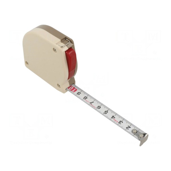Konstrukcja narzędzia została wyposażona w mechanizm blokujący, który pozwala na stabilne utrzymanie wyciągniętej taśmy. Zaczep znajdujący się na końcu taśmy ułatwia wykonywanie pomiarów przez jedną osobę, co usprawnia przebieg prac w warunkach warsztatowych i terenowych.