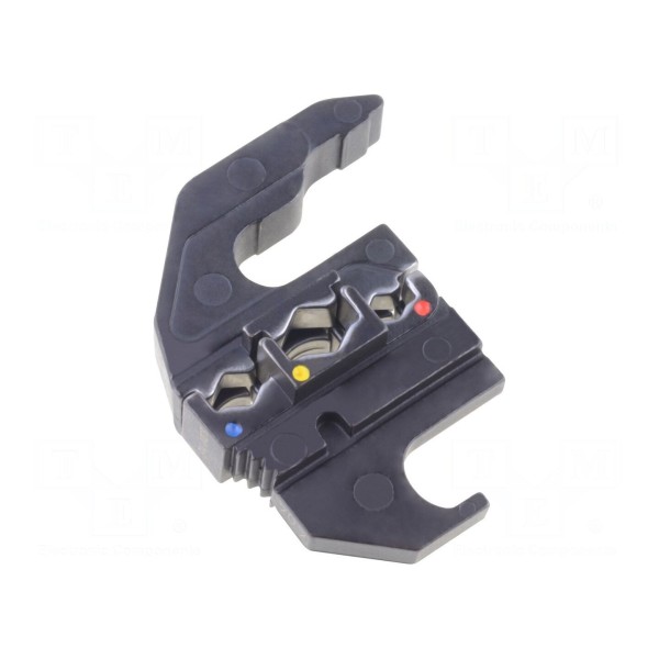 Szczęki do zaciskania przeznaczone są do obróbki końcówek izolowanych oraz tulejek połączeniowych izolowanych. Komponent pozwala na obsługę przewodów o rozmiarach z zakresu od 22AWG do 10AWG.