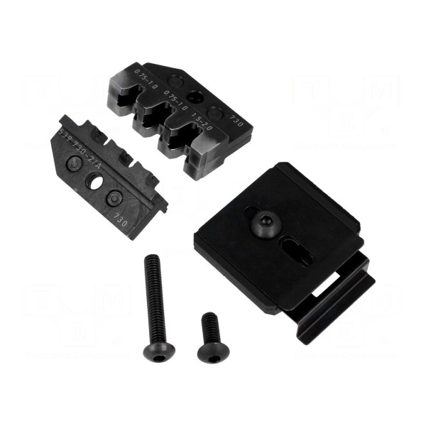 Szczęki do zaciskania przeznaczone są do obróbki terminali typu MATE-N-LOK 3,5mm. Element ten umożliwia pracę z przewodami o przekroju od 0,75mm² do 1mm² oraz od 1,5mm² do 2mm².
