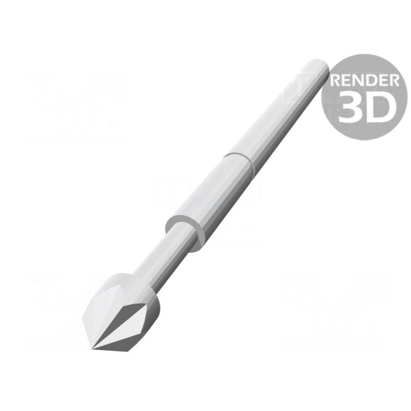 Igła testowa wykonana ze stali z pozłacaną powierzchnią styku. Element charakteryzuje się prądem znamionowym na poziomie 3A oraz maksymalną rezystancją styku wynoszącą 15mΩ.