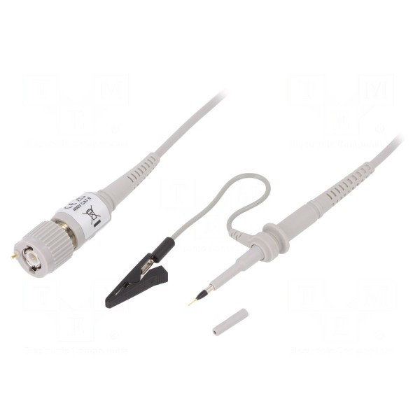 Sonda pasywna przeznaczona do współpracy z oscyloskopami, oferująca pasmo przenoszenia do 500MHz. Urządzenie charakteryzuje się tłumieniem 10:1, czasem narastania ≤0,7ns oraz impedancją wejściową na poziomie 10MΩ przy pojemności 10pF. Maksymalne napięcie wejściowe sondy wynosi 500V, a zakres kompensacji mieści się w przedziale 10...20pF.