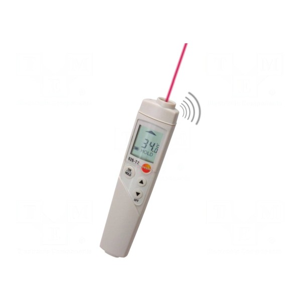 Miernik temperatury TESTO 826-T2 to cyfrowe urządzenie przeznaczone do bezdotykowego pomiaru temperatury metodą podczerwieni. Przyrząd obsługuje zakres pomiarowy od –50°C do 300°C z rozdzielczością 0,1°C. Dokładność pomiaru w zakresie od –20°C do 100°C wynosi ±1,5°C, natomiast poza tym przedziałem dokładność określono na poziomie ±2% lub ±2°C. Zastosowana rozdzielczość optyczna wynosi 6:1.
