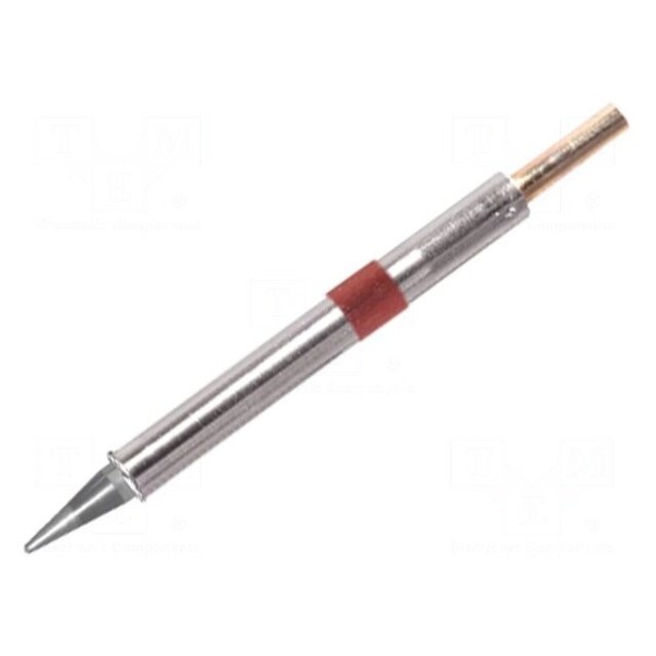 Grot z grzałką o kształcie stożka przeznaczony jest do prac lutowniczych. Element charakteryzuje się wymiarem końcówki wynoszącym 1 mm.