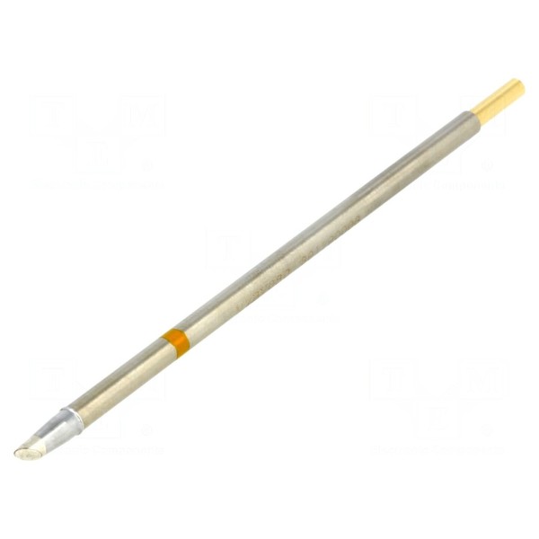 Grot typu ścięty stożek o wymiarze 3mm został zaprojektowany do współpracy ze stacjami lutowniczymi. Element charakteryzuje się konstrukcją z wbudowaną grzałką oraz końcówką ściętą pod kątem 45 stopni.
