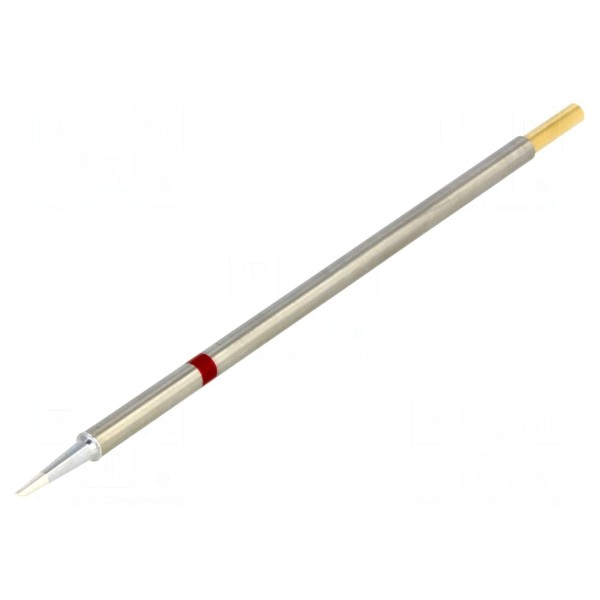 Grot lutowniczy z wbudowaną grzałką przeznaczony jest do pracy ze stacjami lutowniczymi. Element charakteryzuje się kształtem typu kopytko o wymiarze 1,52 mm oraz końcówką ściętą pod kątem 60°, co ułatwia prowadzenie spoiwa w różnych punktach lutowniczych.