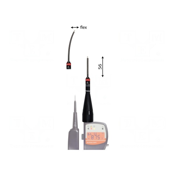 Końcówka pomiarowa o długości 56 mm przeznaczona jest do wykonywania pomiarów elektrycznych przy napięciu znamionowym do 1 kV. Element ten wspiera bezpieczną pracę w układach zasilania zgodnie z wymogami kategorii pomiarowych CAT III 1000 V oraz CAT IV 600 V.