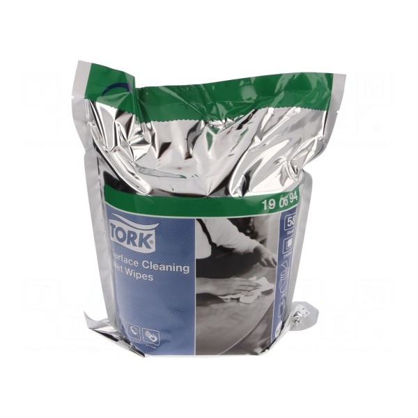 Czyściwo włókninowe TORK wykonane jest z mieszanki poliestru oraz polipropylenu i charakteryzuje się białą barwą. Produkt występuje w wersji nasączonej i przeznaczony jest do usuwania trudnych zabrudzeń z powierzchni. Materiał wykazuje odporność na rozrywanie podczas eksploatacji.
