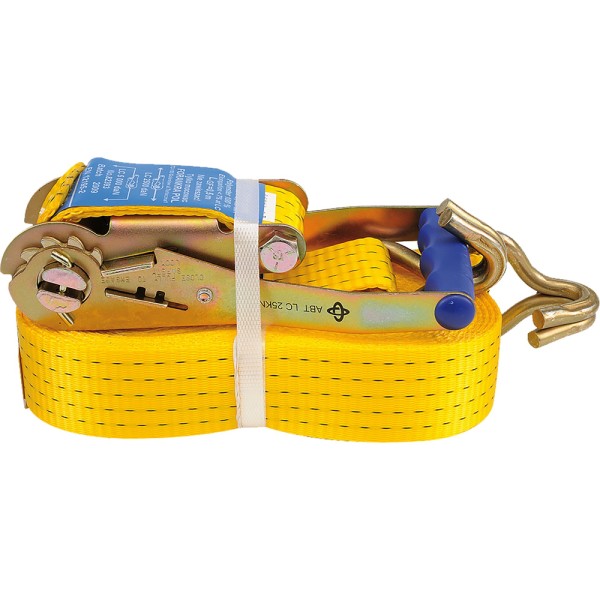 Dwuczęściowa taśma o szerokości 50 mm i długości 8 m. Produkt posiada przekładnię umożliwiającą naciągnięcie i zablokowanie.