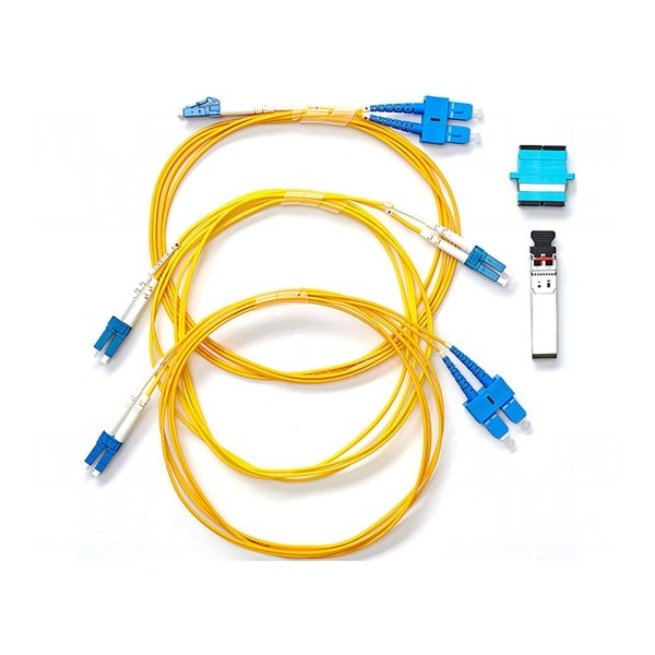 Zestaw zawiera elementy niezbędne do wykonywania pomiarów w systemach światłowodowych. W skład wyposażenia wchodzą kable światłowodowe jednomodowe typu LC-LC oraz LC-SC Duplex, a także adapter SC-SC Duplex.