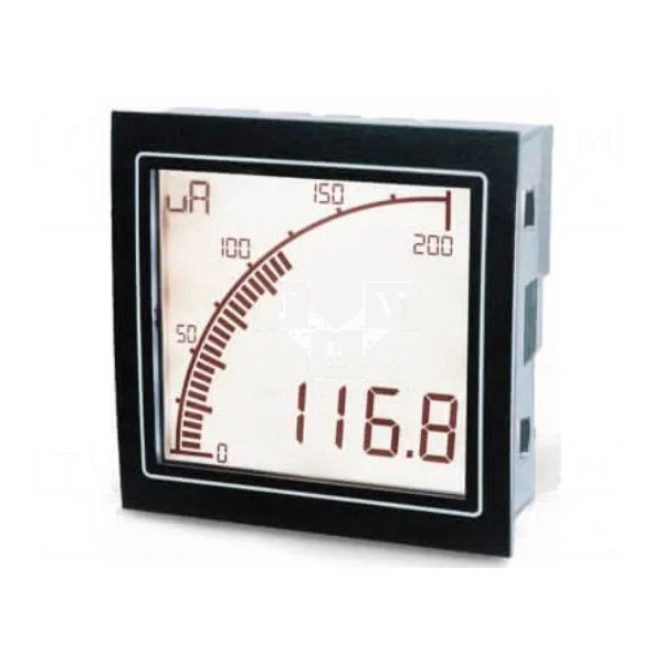 Cyfrowy amperomierz montażowy przeznaczony jest do pomiaru prądu stałego w zakresie od 0 do 200µA. Urządzenie wyposażone jest w kolorowy wyświetlacz LCD typu pozytyw, który prezentuje wyniki za pomocą czterech cyfr oraz 40-segmentowego bargrafu. Przyrząd oferuje wysoką precyzję pomiaru na poziomie 0,01% i umożliwia konfigurację wyjścia 4...20mA.