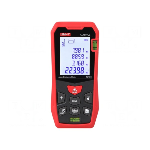 Dalmierz laserowy UNI-T LM120A służy do precyzyjnych pomiarów odległości w zakresie do 120 metrów. Urządzenie oferuje rozdzielczość pomiaru 0,001m oraz dokładność na poziomie ±2mm, obsługując jednostki metryczne oraz imperialne (ft, in, m). Przyrząd umożliwia wykonywanie pomiarów pojedynczych, ciągłych oraz pośrednich, a także obliczanie pola powierzchni i objętości.