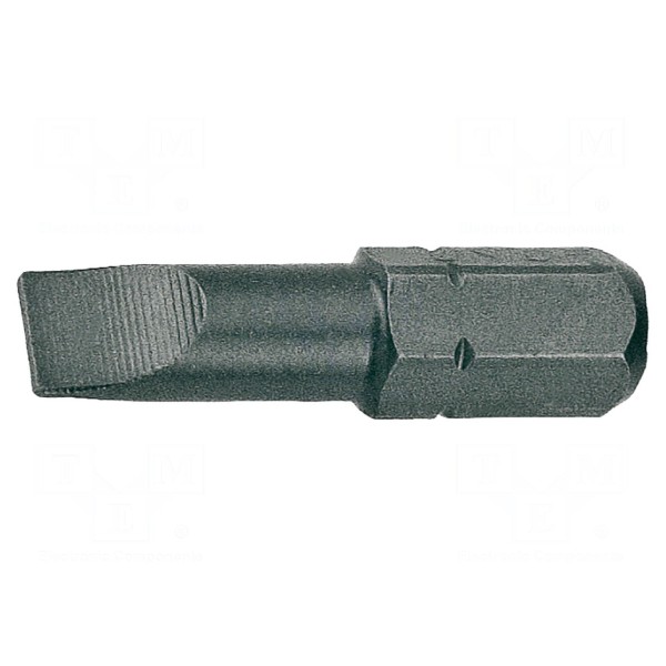 Końcówka wkrętakowa płaska o wymiarach grotu 4x0,5mm przeznaczona jest do pracy z uchwytami o rozmiarze 1/4" oraz typu C6,3mm. Narzędzie zostało wykonane zgodnie z normą ISO 2351.