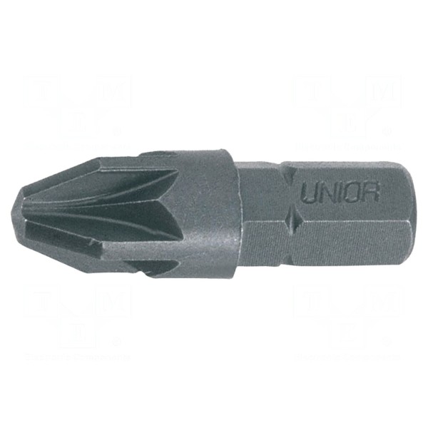Końcówka wkrętakowa typu Pozidriv o rozmiarze PZ1 przeznaczona jest do współpracy z uchwytami o gnieździe 1/4" oraz standardzie C6,3mm. Całkowita długość narzędzia wynosi 25mm.