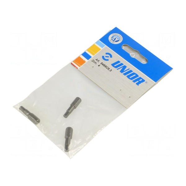 Końcówka wkrętakowa o profilu imbus HEX 4mm przeznaczona jest do pracy z narzędziami wyposażonymi w uchwyt o rozmiarze 1/4" (typ C6,3mm). Narzędzie posiada długość całkowitą 25mm i wykonane jest zgodnie z wymaganiami normy ISO 2351.
