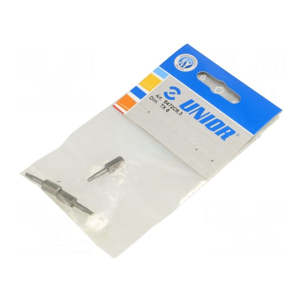 Końcówka wkrętakowa przeznaczona do prac z gniazdami typu Torx o rozmiarze TX08. Element posiada uchwyt o rozmiarze 1/4" (C6,3mm), co umożliwia współpracę z wieloma systemami mocowania narzędzi ręcznych. Całkowita długość końcówki wynosi 25mm. Narzędzie zostało wyprodukowane zgodnie z wymogami normy ISO 2351. Opakowanie zawiera 3 sztuki produktu.
