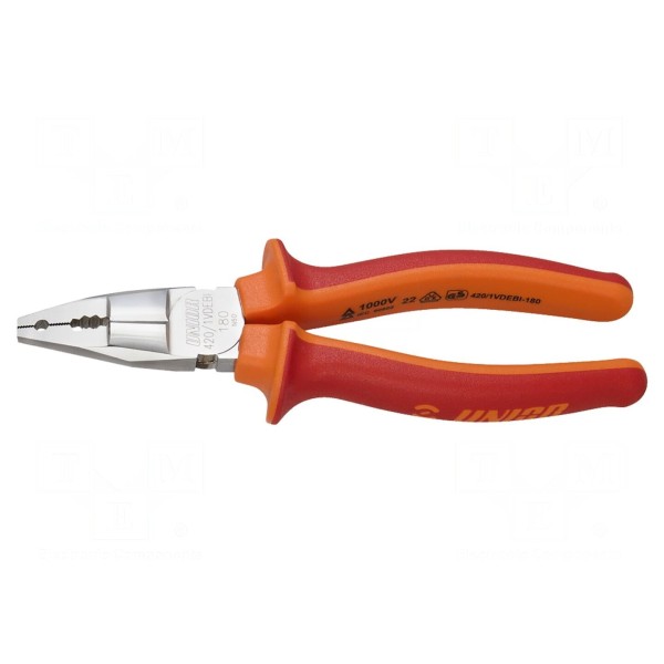 Szczypce izolowane uniwersalne 180mm, stal węglowa
